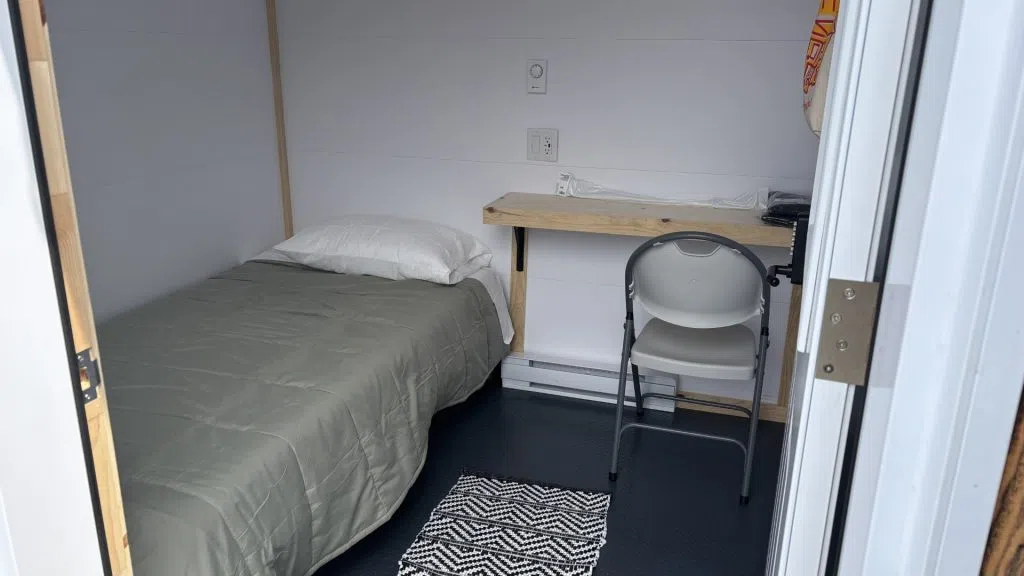 Each heated unit is eight feet by eight feet and includes a bed, lighting, internet and secure entry. They also have a tablet that gives residents access to services and entertainment.